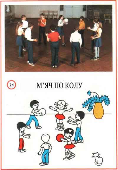 По сигналу керівника капітани передають м'ячі по кругу 8 протилежних напрямах гравцям своєї команди, тобто через одного. М'яч повинен щонайшвидше повернутися до капітана. Можна умовитися і передавати його три рази по кругу. Якщо м'ячі зіткнулися, гру продовжують з цього місця.