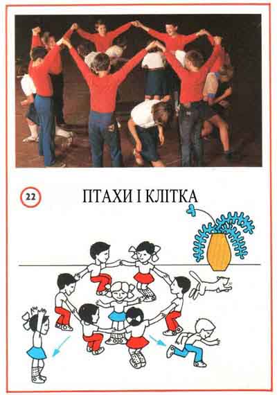 Гра розрахована на школярів молодшого віку і сприяє вихованню витримки, сміливості і рішучості. Половина тих, що грають (8—12 чоловік), узявшись за руки, утворюють круг — «клітку». Інша половина — «птахи». Вони розташовуються вільно по зовнішній стороні круга. По сигналу керівника гравці «клітки» рухаються кроком (можна скачками) управо, а «птахи» — вліво. По наступному сигналу «клітка» зупиняється, і гравці піднімають сполучені руки вгору.