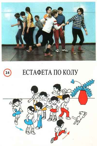 Якщо учасники непогано володіють м'ячем, то естафету можна проводити з баскетбольним м'ячем.